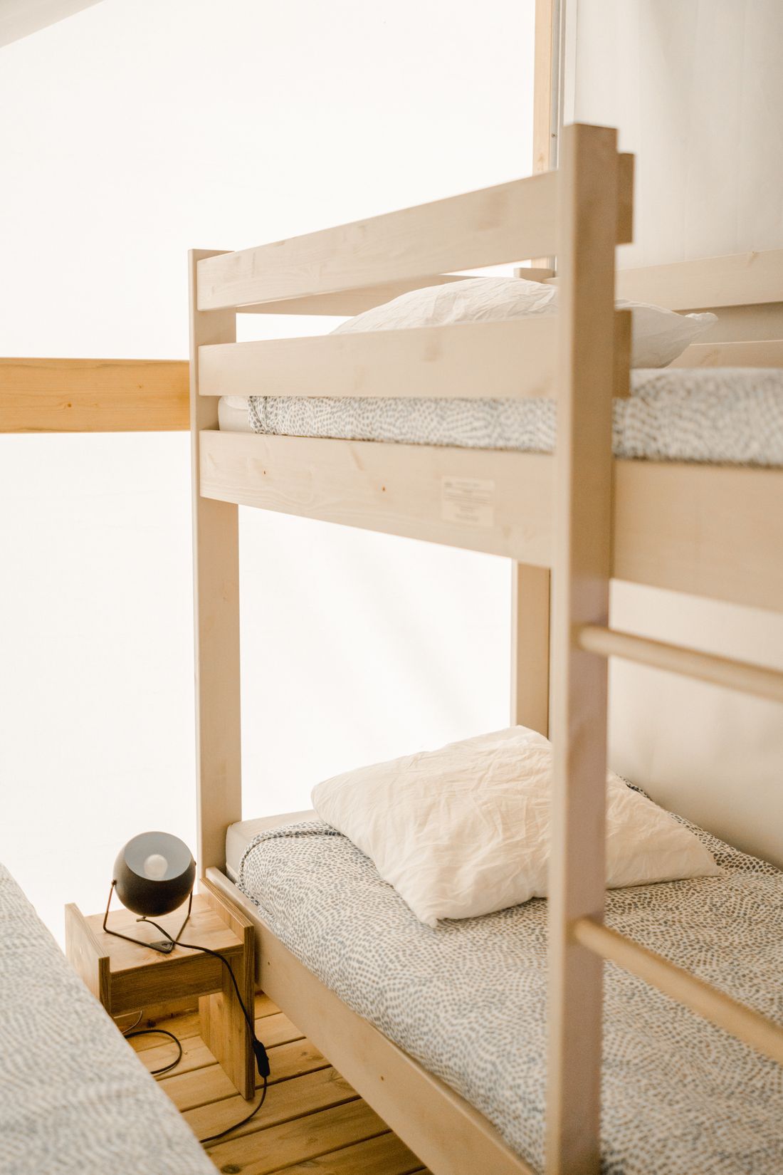 La lodge, séparée en deux chambres par une cloison toilée rappelant une petite tente, peut confortablement héberger jusqu’à 5 personnes. Elle comprend :