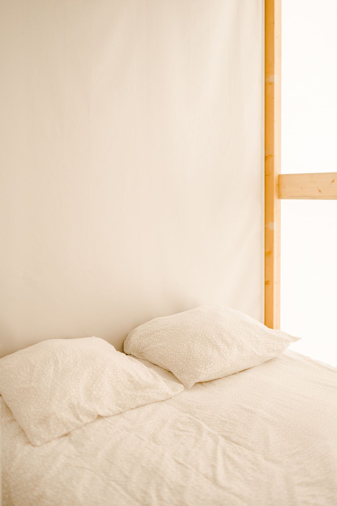 Une deuxième chambre dotée d’un lit simple et de deux lits superposés (80 cm), également pourvus de couettes, d’oreillers et de lits faits.
