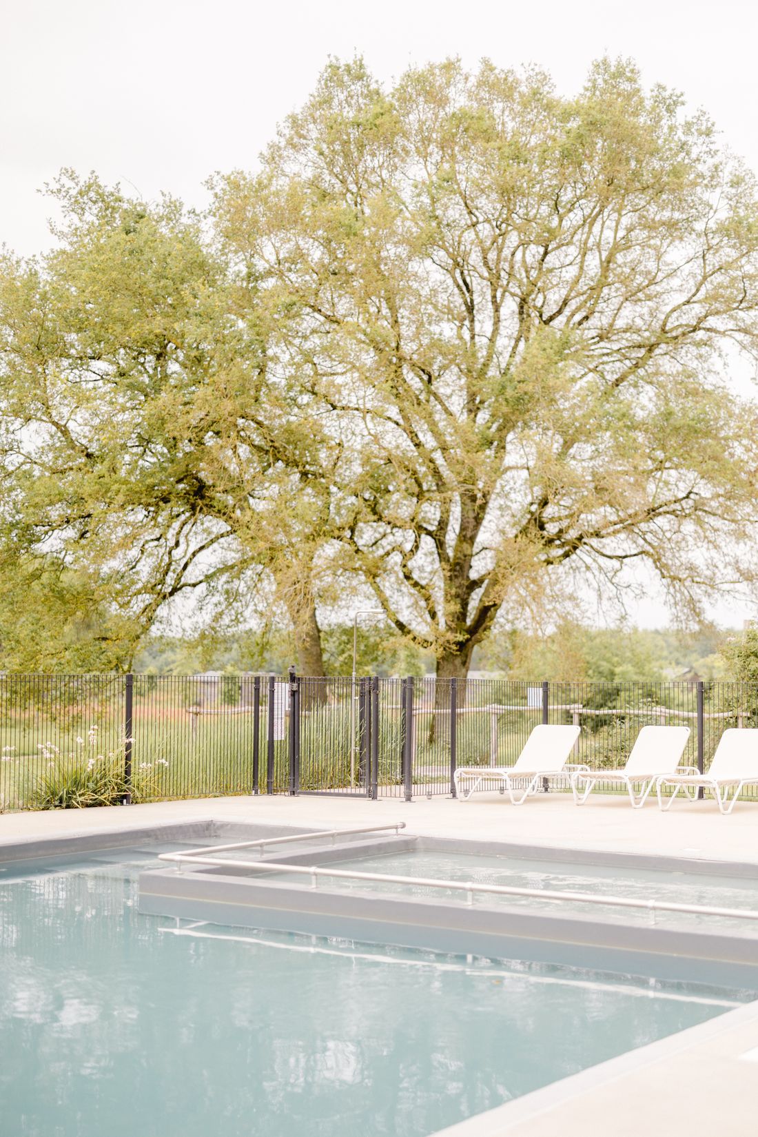 Comfortabel languit in de ligstoelen of leunend op de rand van het zwembad geniet u van het prachtige directe uitzicht op de weide en de grote eiken. Deze natuurlijke omgeving is ideaal voor een zwembad.